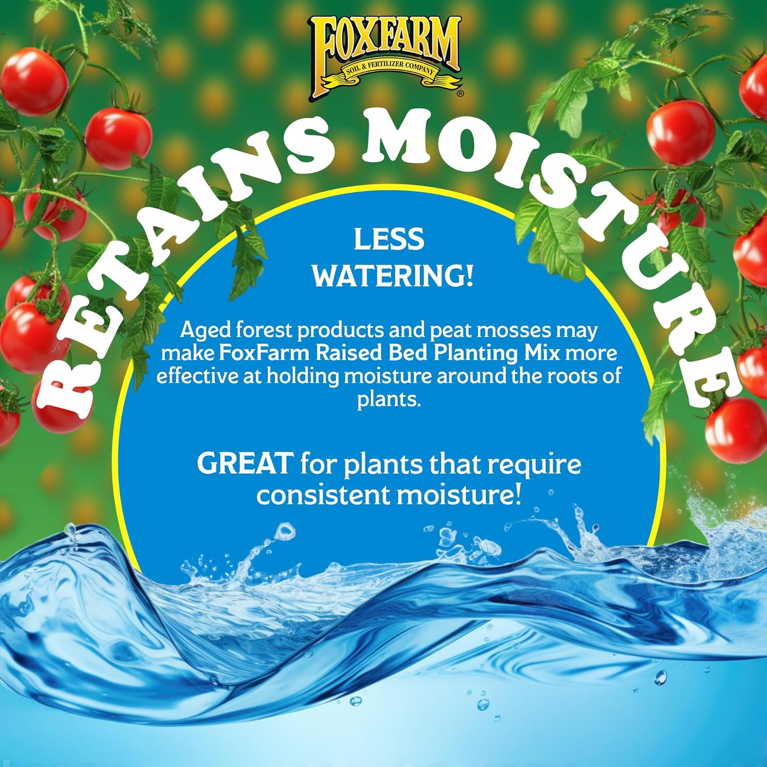 FoxFarm Raised Bed Planting Mix, 1.5cu ft - All-Purpose Garden Soil with Earthworm Castings & Oyster Shell - Ready-to-Use Blend for Vegetables, Flowers, Fruits & Herbs