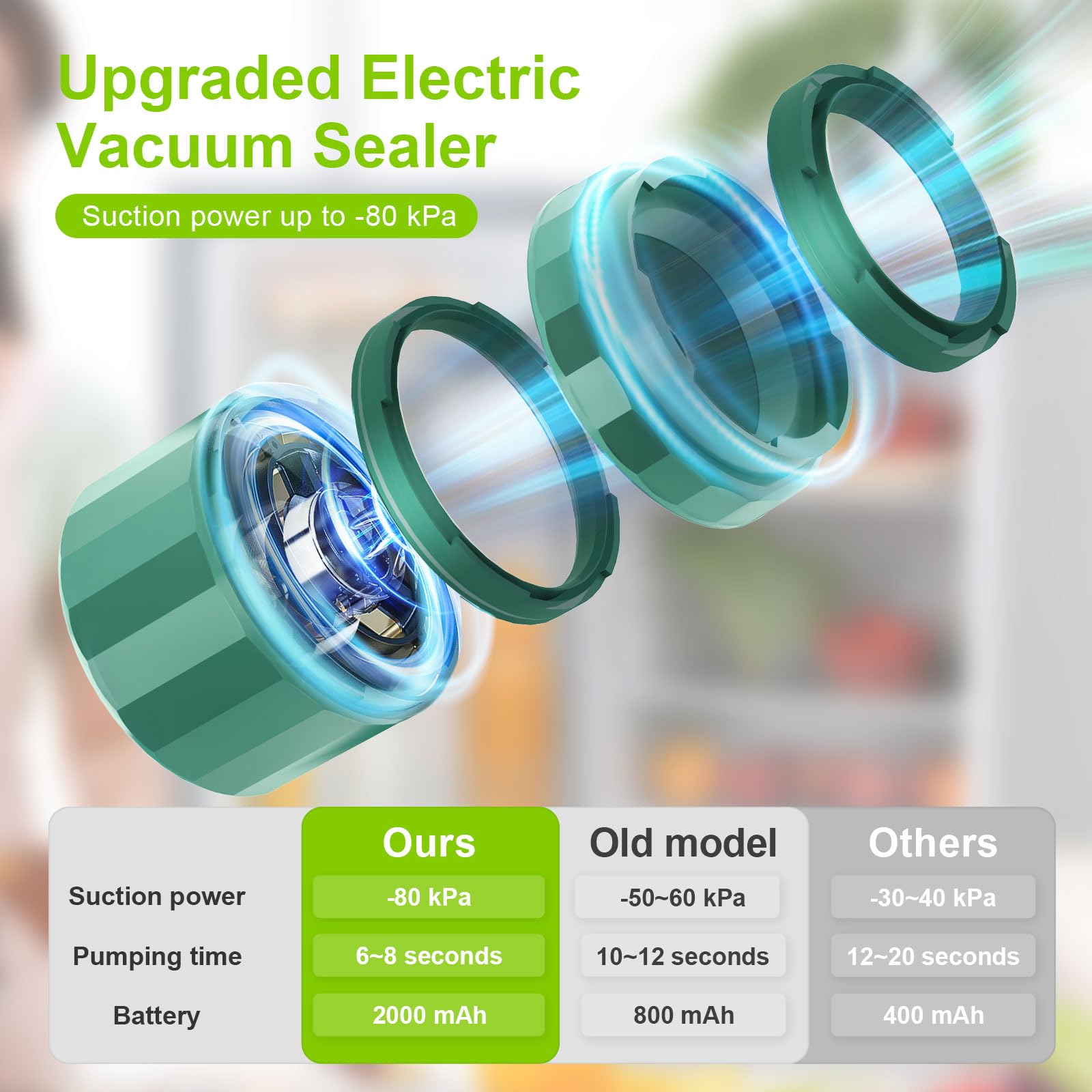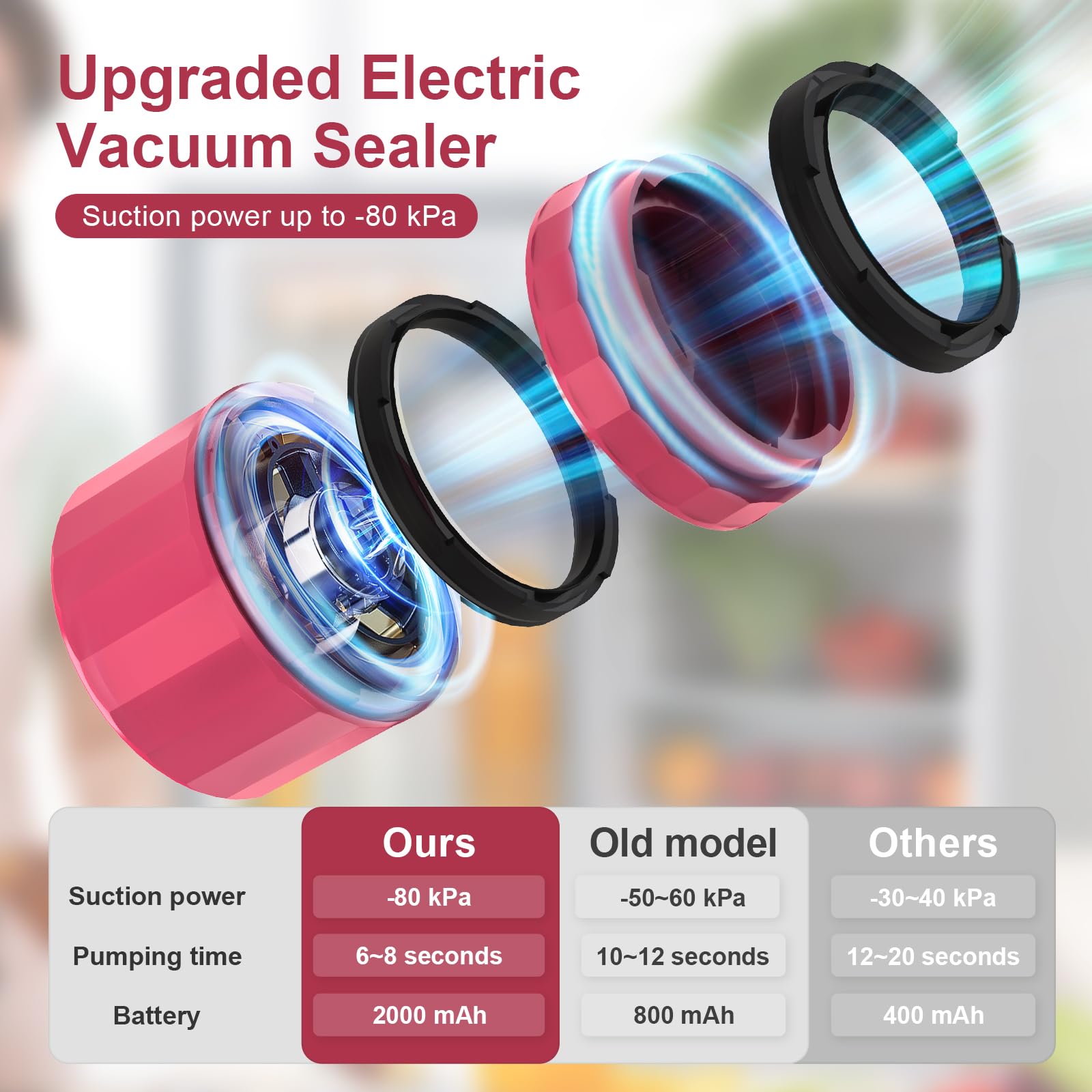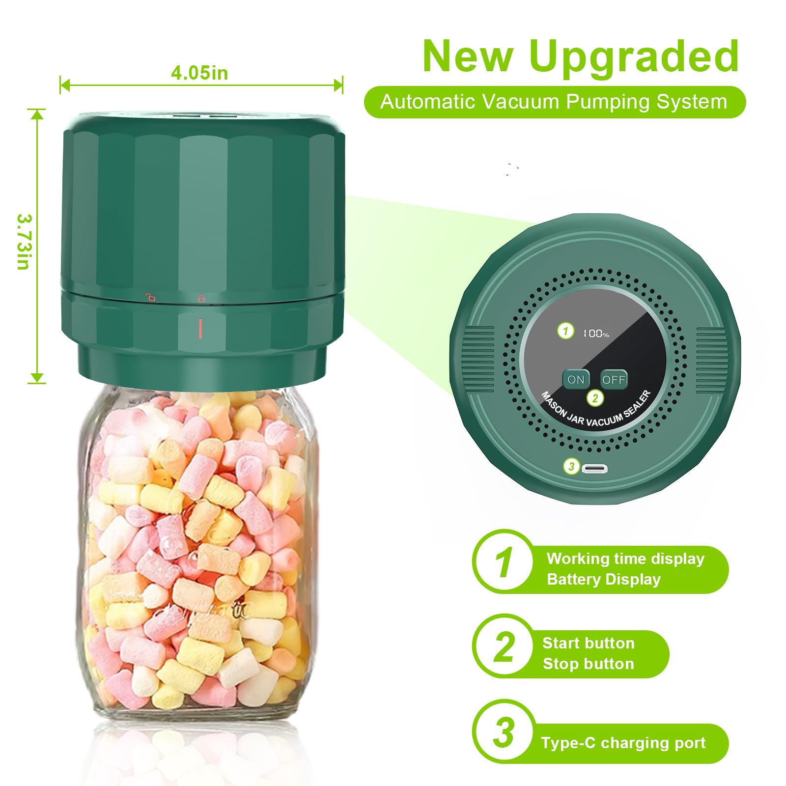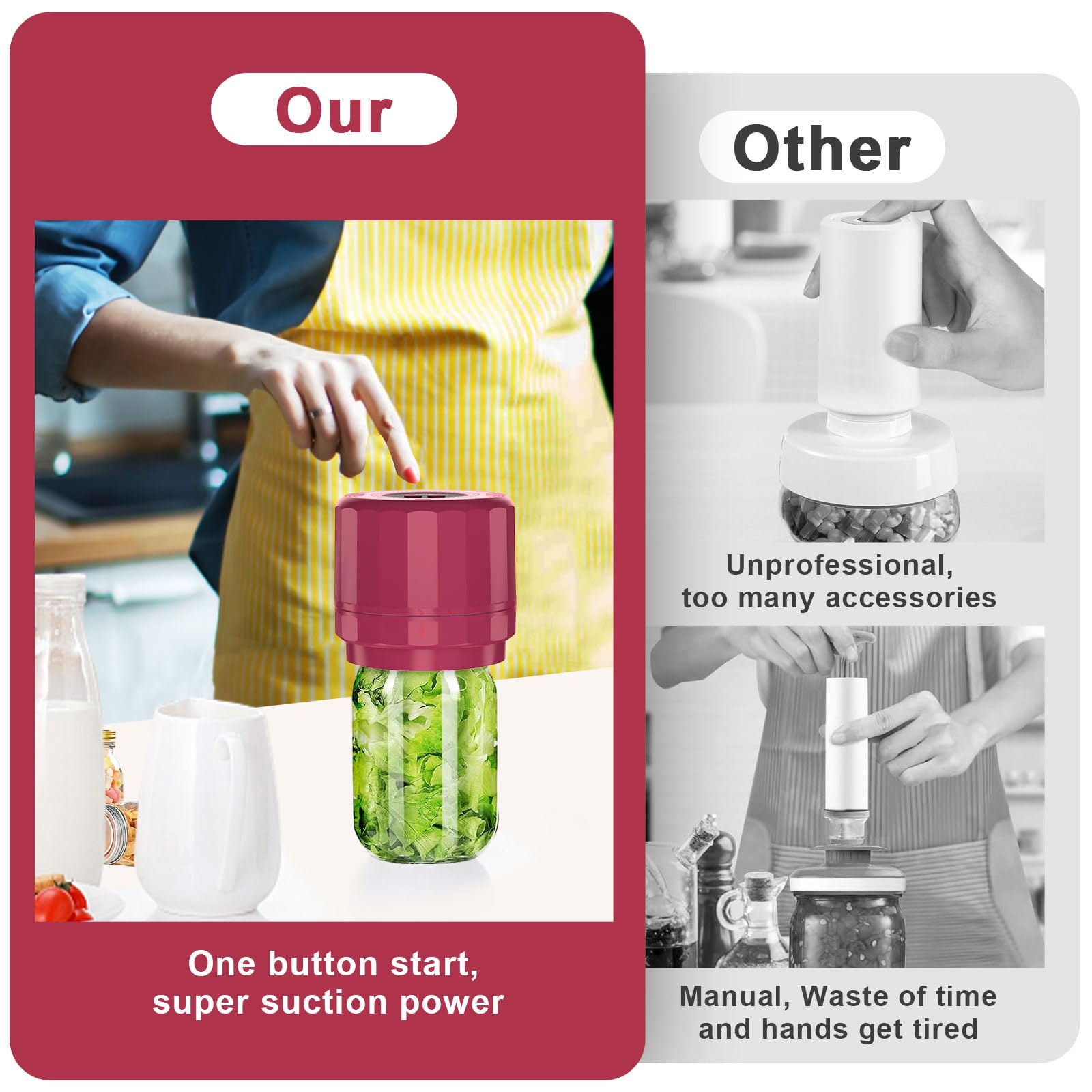 - Long-term Food Fresh Saver - Use in confidence, our hand vacuum sealer for jars is made of ABS plastic and food-grade silicone, you can use to extract the air from your mason jars. Our mason jar electric vacuum sealer can extend freshness, and reduce food waste.
