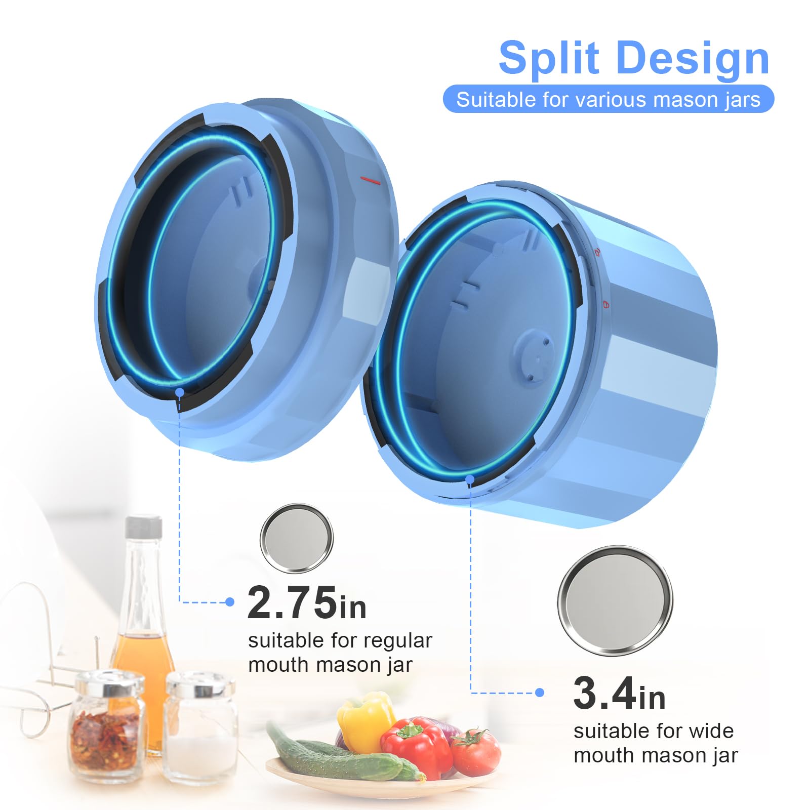 - Automatic Canning Vacuum Sealer Mason Jar, Free Up Your Hand - The electric vacuum sealer machine is easy to use, No need for manual pressing; place the mason jar vacuum sealer set at the center and firmly press it onto the jar lid. Just press the button and wait for more than 10 seconds, saving time for busy home chefs.