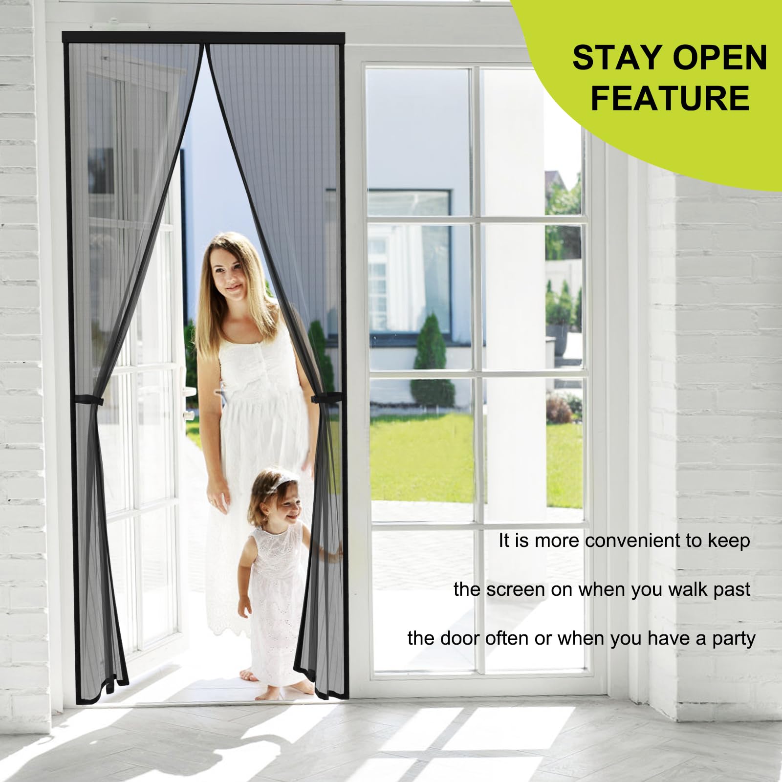 Magnetic Screen Door -Fit for Door Size:32x80 Inch, Hands Free Mesh Partition, Heavy Duty Screen Door Mesh Curtain Keeps Bugs Out, Frame Hook & Loop, Pet and Kid Friendly, Itself Size 34x82