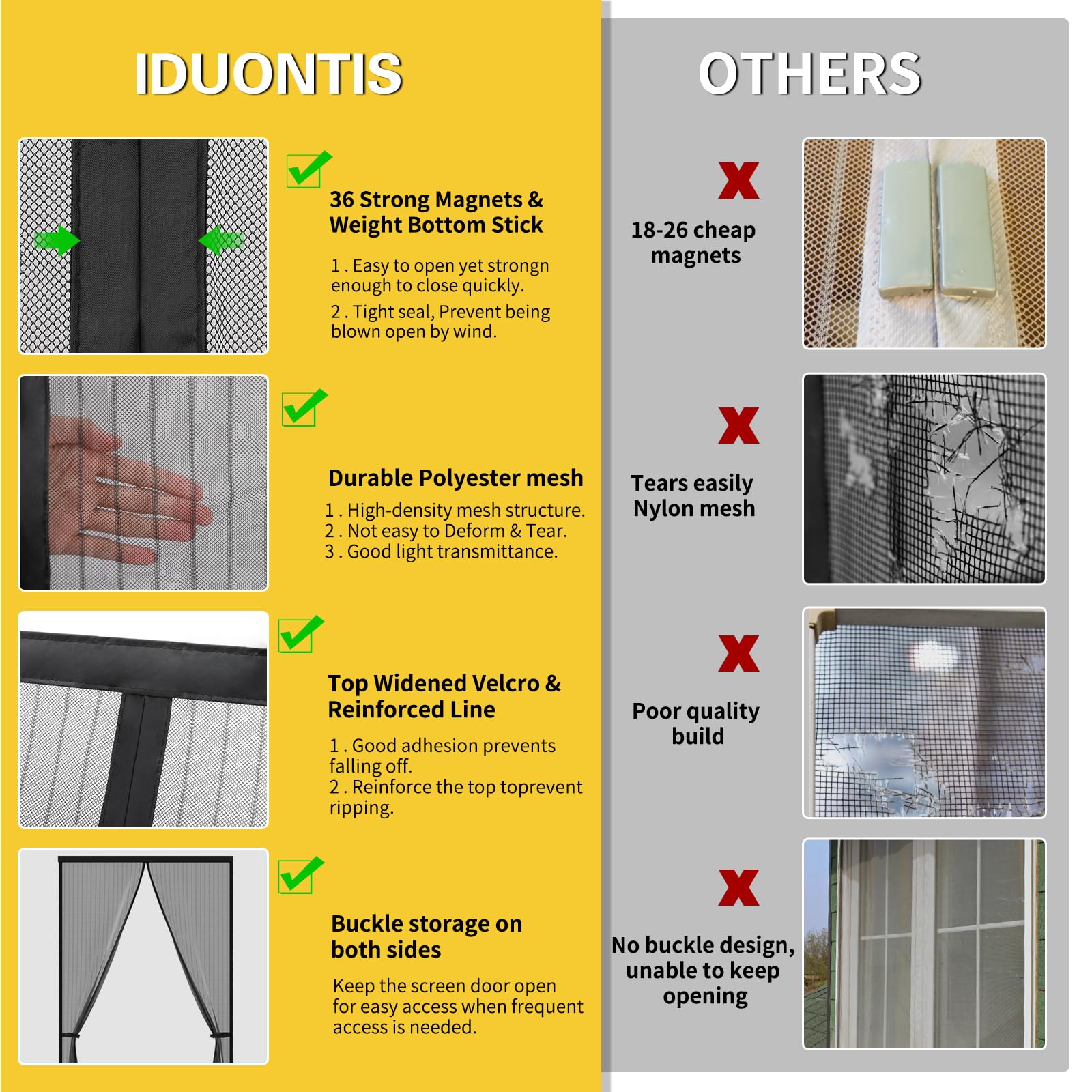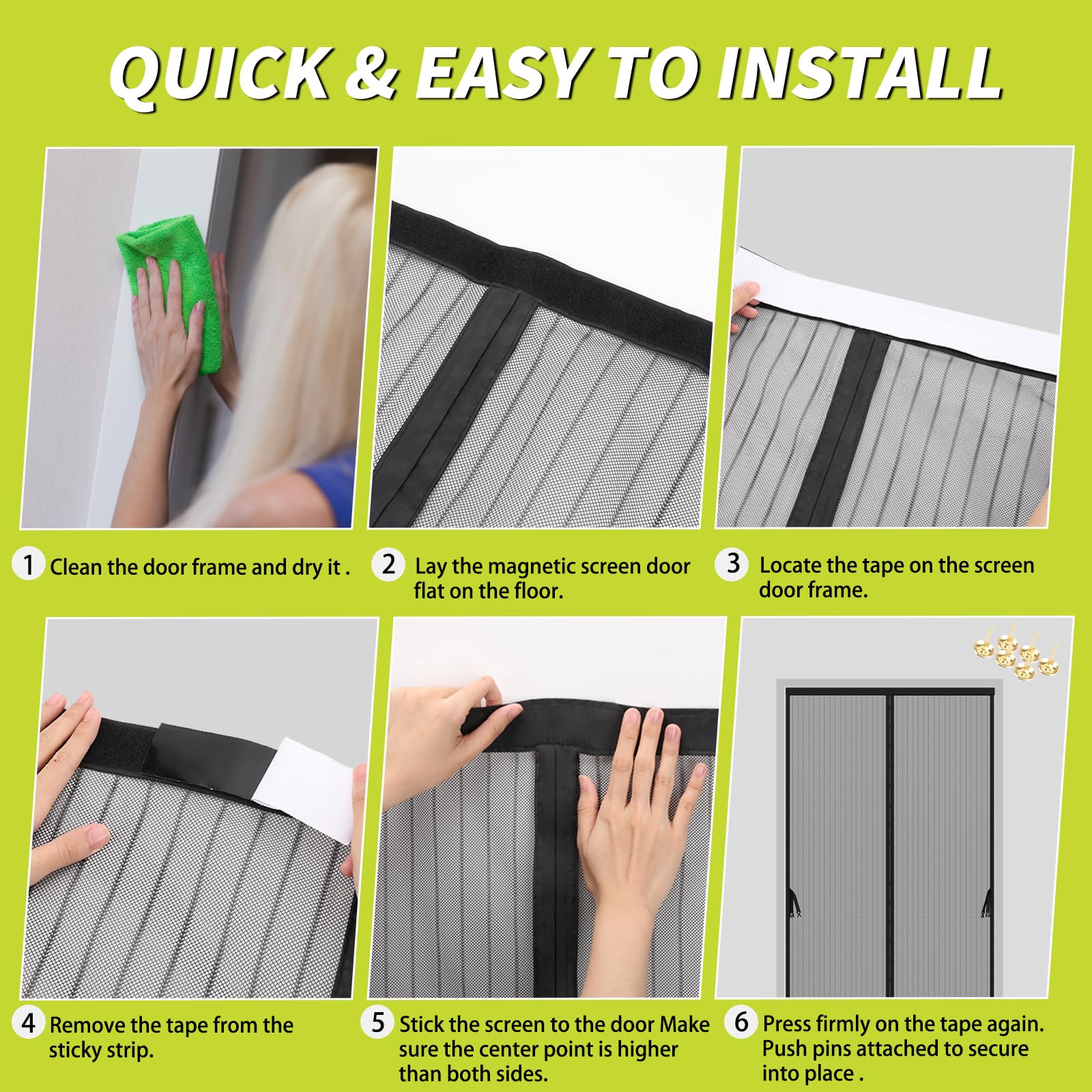 - 【Let Air In】Split right down the middle like a curtain, this high quality magnetic screen door allows hands free entering & exiting, making it easy to pass with occupied hands, and is kid friendly.
