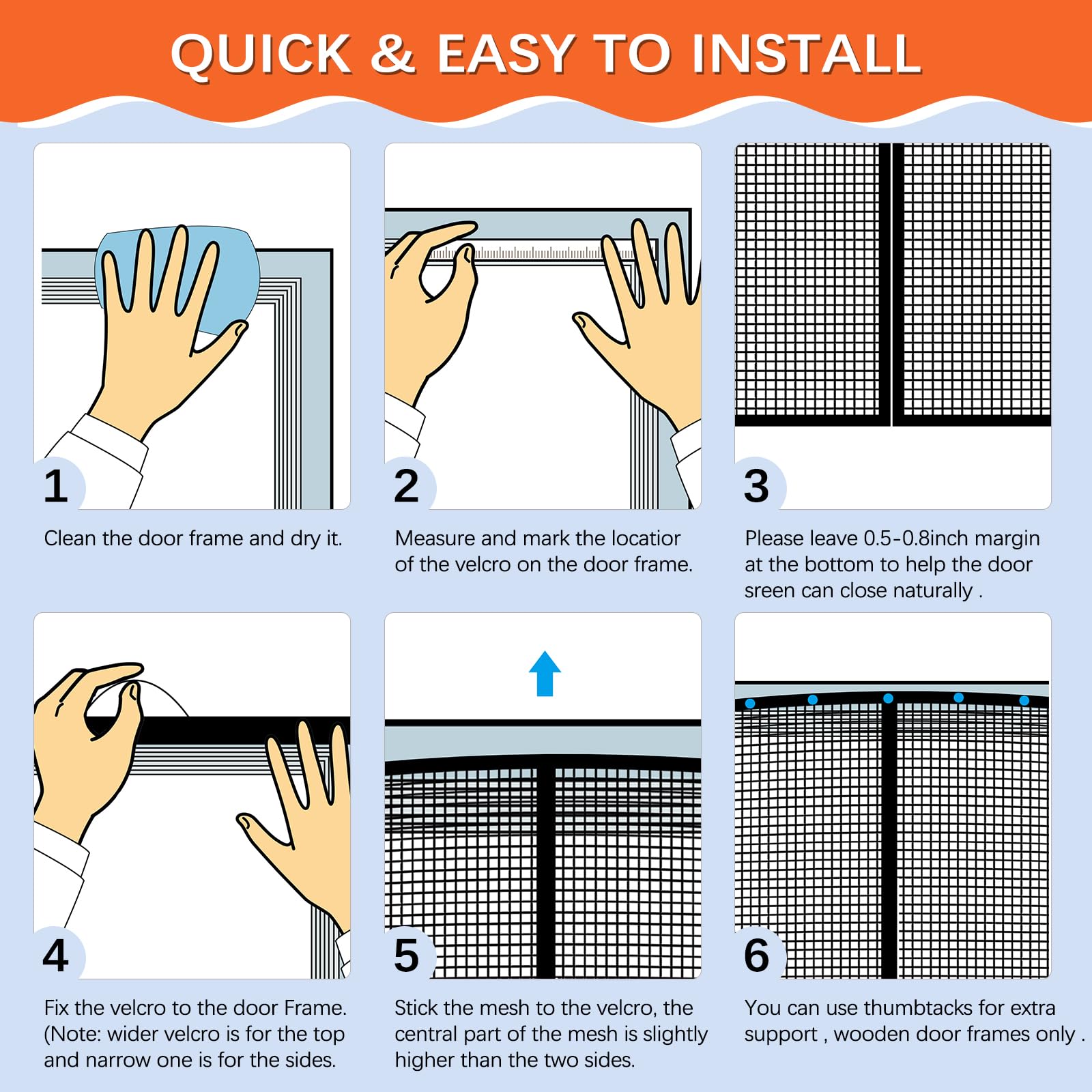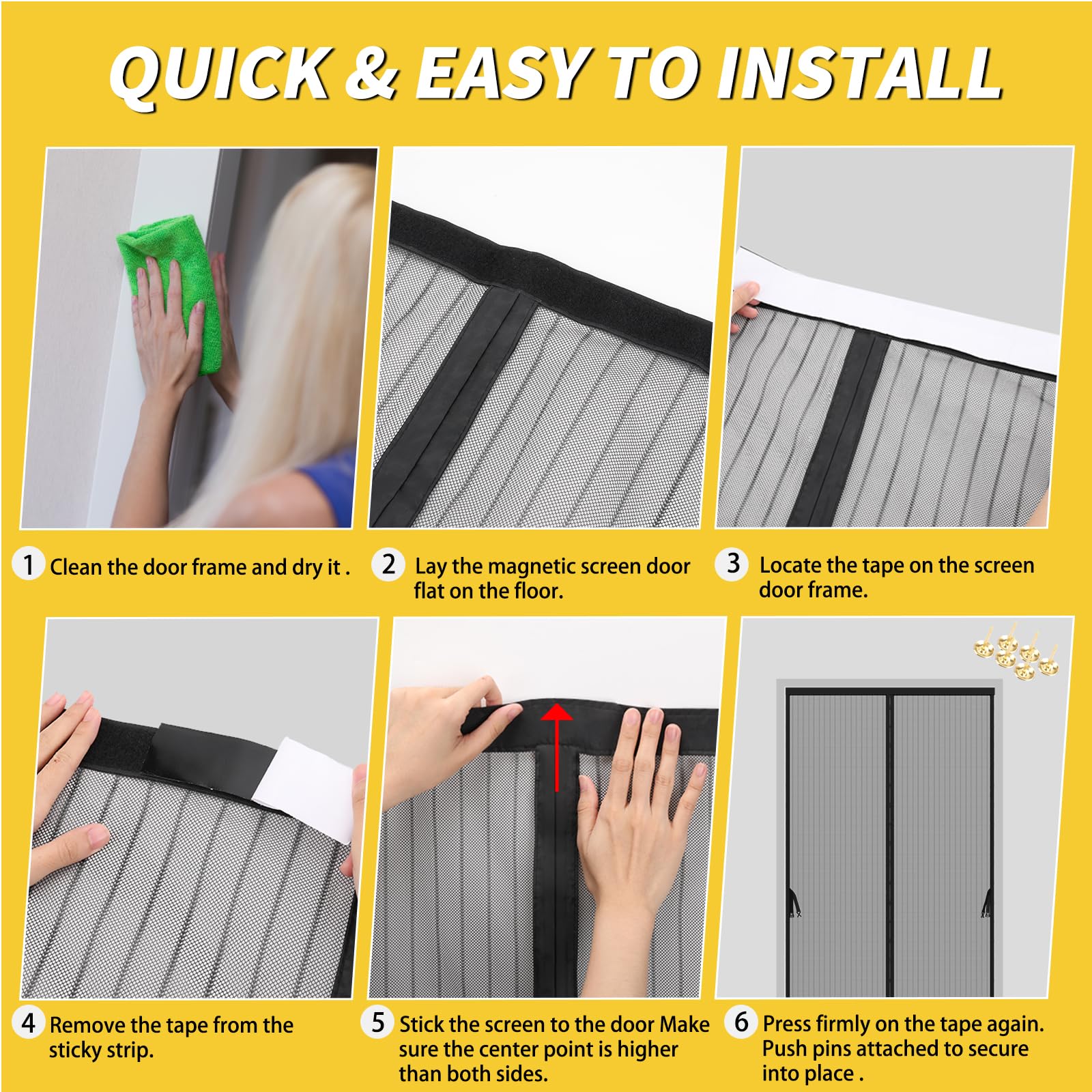- 【Opens and Closes Easily】The middle seam of the Magnetic screen door allows the door to open and close easily and seamlessly! The folding screen door is also retractable, frameless, detachable and could be rolled up for temporary storage when you want to remove it. The polyester mesh fabric is durable enough to withstand thousands of uses.