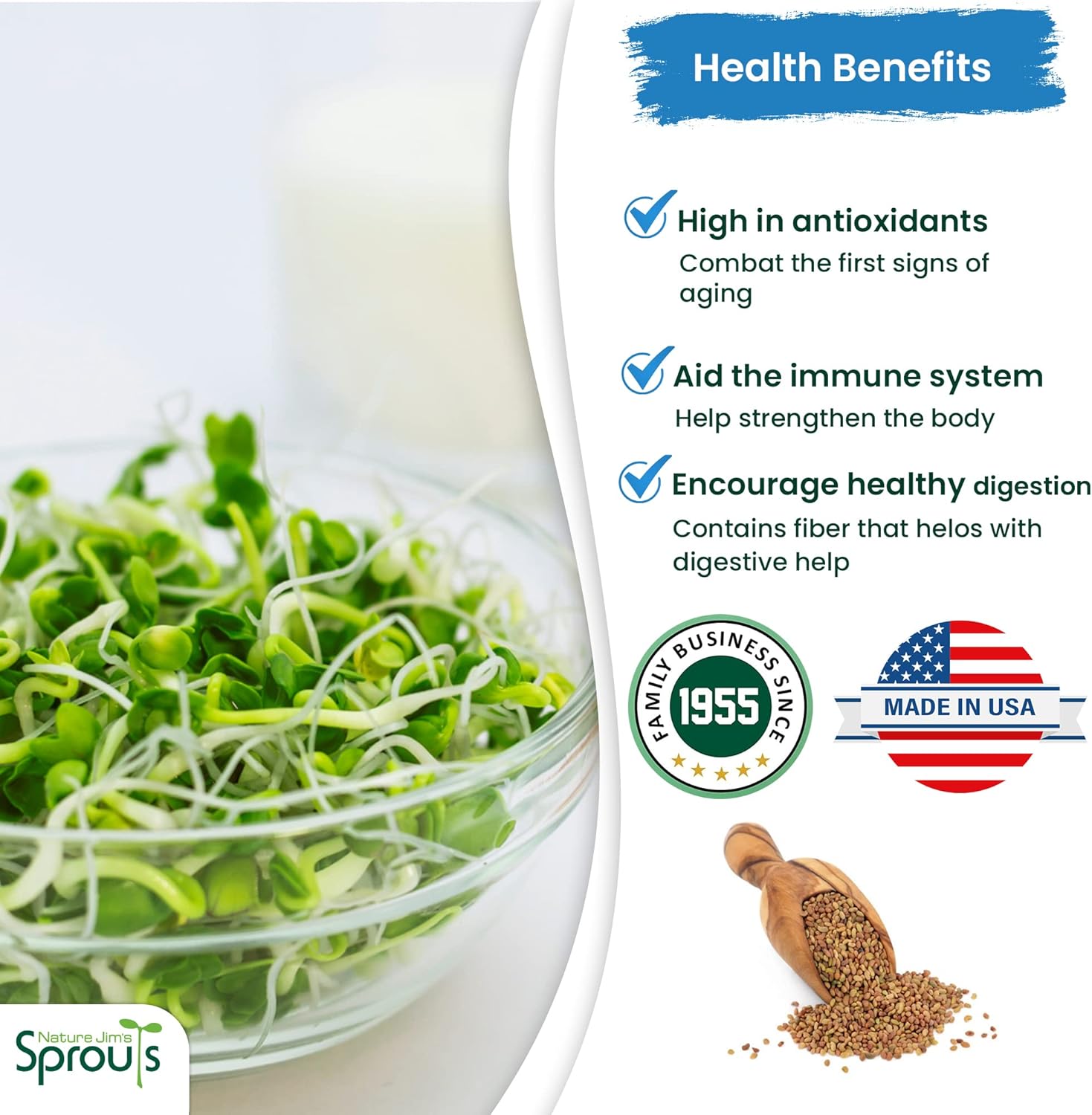 Nature Jims Sprouts Alfalfa Seeds – Non-GMO Organic Sprout Growing Kit for Planting – Premium Resealable Bag for Fresh Homegrown Sprouting Seeds – Rich in Nutrients, Vitamins, Fiber & Minerals – 16oz