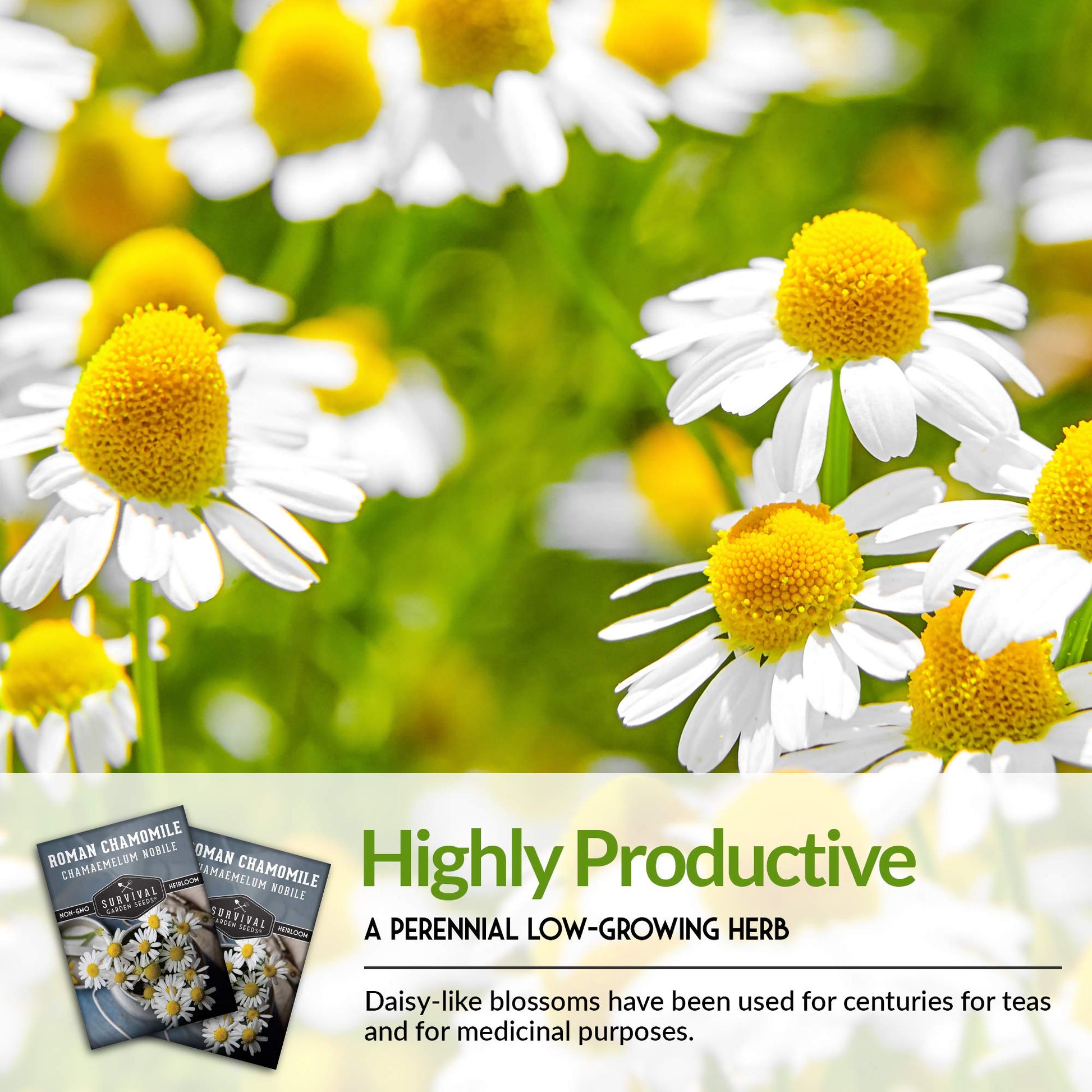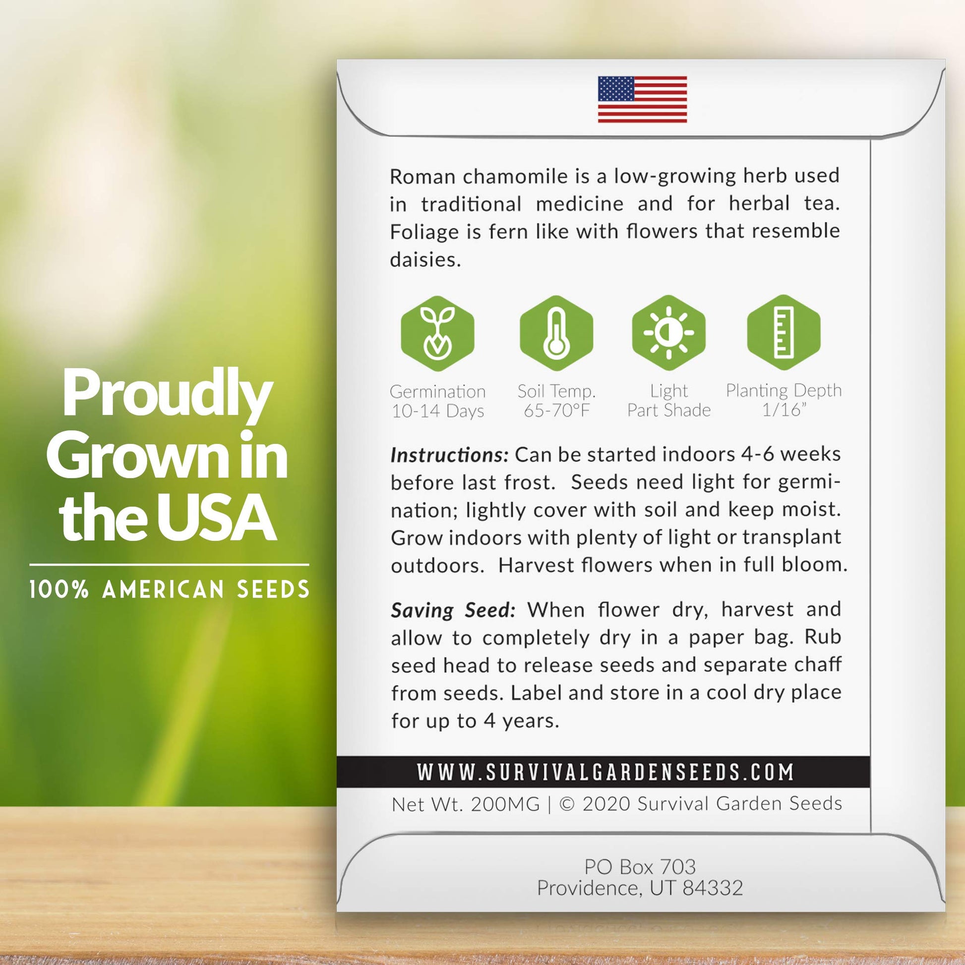 Roman Chamomile Seed for Planting - 3 Packets with Instructions to Plant & Grow Calming Medicinal Herbs in Your Home Vegetable Garden - Non-GMO Heirloom Variety - Survival Garden Seeds