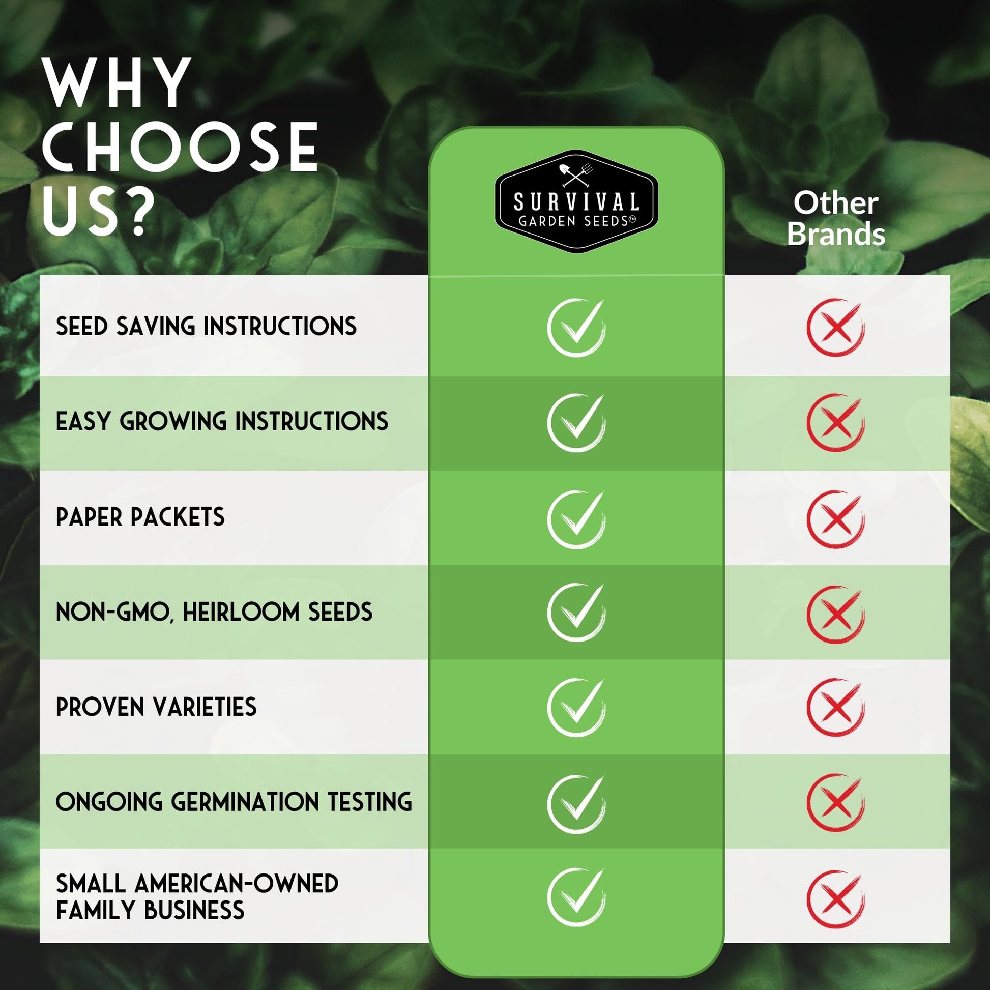 - Small American Family-Owned Business - We’re committed to providing fresh, high-quality seeds for you to plant now or to store for future growing seasons. We pledge to sell only safe, non-hybrid non-GMO heirloom seeds that are always open-pollinated, untreated, and tested to ensure the best germination rates. They will remain viable for years if stored properly in a cool dry location.